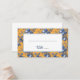 This is a charming and elegant table number card featuring a vibrant orange background adorned with intricate blue floral patterns. The central white space provides an inviting area for personalisation, perfect for adding your own touch to wedding or event decor. The delicate script font adds a sophisticated flair, making it both functional and aesthetically pleasing. Ideal for creating a cohesive and stylish theme at any gathering.