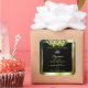 Make a lasting impression with this elegant and modern product label design featuring pretty roses and rose leaves on a frame with teal and green marble pattern. Matching a shimmering fine gold frame on a black background.