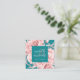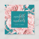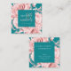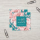 Floral Teal & Rose Gold Modern Script Monogram Square Business Card
