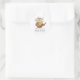 The sticker is made on wonderful paper and had no problem sticking to the bag that I purchased to put it on. I wanted to find a design that would be cute for the bride and groom and this one fit the bill as it has cute "bees" buzzing around and the wedding was taking place in a town called "Bee Cave". The packaging was great and protected the stickers. The website is easy to navigate and there are so many color choices. I had no problem finding a color that the bride was using on everything else selected. The design was adorable and there were many to choose from. You can make the figure as larger or smaller and you can place the photo and writting whereever you want to in the sticker. The printing is fabulous..better than expected.