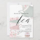 This elegant bridal shower tea invitation features a white background with a teapot and tea cups with flowers. The reverse side features a white background with blush pink stripes. Personalise it for your needs. You can find matching products at my store.