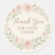A beautiful round sticker featuring soft blush watercolor florals and greenery, with the message “Thank You For Your Order” in an elegant script and serif font combination. Perfect for small businesses to add a warm and professional touch to packaging, envelopes, or product bags. This minimalist botanical design enhances your branding with charm and gratitude.