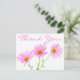 This charming floral Thank You postcard features three pretty pink lavender Gerbera daisies highlighted against a crisp white background.