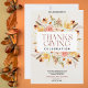 Invite your guests to a warm and festive Thanksgiving celebration with this elegant invitation featuring a beautiful floral design. The soft, earthy tones of the flowers and foliage frame a classic Thanksgiving message, setting the perfect tone for your holiday gathering. Ideal for a family or friends dinner, this invitation captures the spirit of gratitude and togetherness.