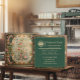 Elegant square business card featuring a traditional oriental carpet–inspired floral pattern in rich dark emerald green, accented with warm pink ornamental flourishes. This sophisticated, vintage-style design is ideal for carpet cleaning services, rug restoration businesses, and home care professionals who want a refined and trustworthy brand presence.
