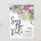 A tropical design that embraces the tranquil beauty of nature mixed with a playful edge that is sure to help you have fun. A blend of calming green tropical leaves, including banana leaves, palms, monstera leaves, and pink princessa plants, alongside soothing purple-pink orchid flowers and protea bloom, intertwined with various other foliage. Adding an element of fun, a black 'messy dot' or 'dalmatian dot' background on back infuses the design with a playful touch (you can remove if you want). Enhanced by a modern handwritten font, this enchanting print radiates charm and sophistication. This versatile design brings a sense of tropical paradise to any setting or special occasion, making it perfect for a destination wedding, or just when you want to add a tropical flare. Chic Modern Floral Watercolor Tropical Wedding Save the Date