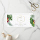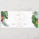 Wedding Seating Chart board with tropical design, greenery palm leaves, yellow & red floral and gold geometrics.