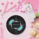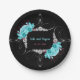 Floral Turquoise and Mauve Elegant Rhinestone Paper Plate