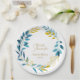 A beautiful bridal shower paper plate in a blue and gold floral design