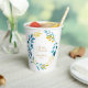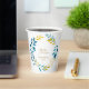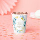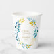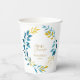 A beautiful bridal shower paper cup in a blue and gold floral design.