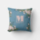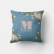 Pretty pink rose floral pillow with a typography design and elegant cute, calligraphy, simple monogram, with a pink and blue, vintage, rose, personalised with name and monogram initial