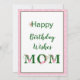 Birthday Card tor Mom with decorative flora accented lettering on a pale pink background frame and flora accents with a butterfly on the back.