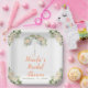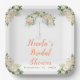 Beautiful bridal shower plate with a white umbrella and peach and cream floral arrangements. Perfect for a baby shower. The words can be changed to suit your own details or requirements