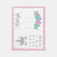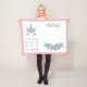 Cute unicorn baby blanket on which you can lay your baby girl and take monthly milestone photos. Above the month chart, a pretty unicorn with long lashes, stars and hearts scattered under its eyes, and a flower crown on its head. Your baby's name in a calligraphy script above a flower arrangement in pink, blue, and purple.
