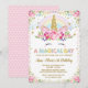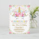 Floral Unicorn Birthday Pink Gold Party Invite