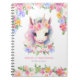 Floral Unicorn Cute Girly Custom Name Kids School Notebook