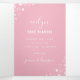 Cute trifold birth announcement with a unicorn wearing a flower crown on the cover along with large pastel-coloured letters spelling out WELCOME above the baby's name in a pretty script. Inside the trifold baby announcement, add two photos of your precious baby girl inside striped pastel frames along with birth stats in white against a pink background decorated with stars and hearts. Add another two photos to the back for a total of four photos of your beautiful baby.