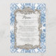 Floral Vintage Baroque Rococo Blue Silver Menu