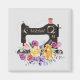 A pretty sewing themed fridge magnet patterned in a black vintage style sewing machine on light grey background. Accented with your chosen monogram and a lavish bouquet of pastel flowers. Just edit the monogram. Your choice of round or square. Nice stocking stuffer. or pin catcher for the sewing room.