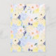 Sweet spring flower bouquet with pink roses, blue hydrangeas, purple and yellow flowers on a watercolor blue background. Elegant modern script typography with delicate swirls elements. Soft pastel shades of yellow, blue and pink are the main colours of this wedding suite. Personalise the text, add wedding information and make this invitation yours.