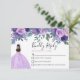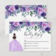 Purple Quinceañera Party RSVP Card: This elegant RSVP card now features watercolor roses and flowers in a variety of purple hues, from deep violet to soft lilac, beautifully arranged along the top of the front, accented by lush green leaves. To the left side, a girl in a stunning purple sparkle dress with a matching crown adds a regal and personalised touch to the design.