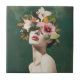 A captivating digital artwork of a woman with flowers and lush greenery adorning her face, obscuring her eyes and creating a sense of mystery and connection with nature. Her soft, stylised features contrast with the vibrant flowers and foliage, while the rich green background highlights the beauty of her floral crown. The composition blends surrealism and elegance, embodying a harmony between human form and nature.