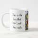 Jumbo floral mug with an uplifting Scripture Verse (Psalm 118:24). A beautiful picture of a red rose bloom (faux stained glass), bordered by the following bible verse: "This is the day that the LORD has made; let us rejoice and be glad in it." Perfect for home or office, or would be a nice gift to share your faith.