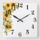This acrylic wall clock is shown with a lovely sunflowers art print.