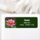 These address labels feature a dark green background along with white lettering for your personal information. A beautiful pink water lily photo accompanies your name and address. The photograph features a pink lily with a burst of vivid yellow color in the center. The entire flower is surrounded by dark green lily pads.