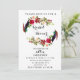This timeless, romantic design features a burgundy watercolor floral wreath with feather and botanical accents.