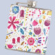 A watercolor painting of flowers and leaves in rich colours scattered on a white background. Original art by Nic Squirrell.