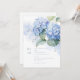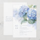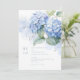 Modern and elegant. This lovely single flat wedding invitation card features a floral bouquet of fresh blue hydrangeas in full bloom, against accents of blue watercolor. A set of contemporary fonts creates a fresh modern tone.