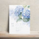 Modern and elegant. This lovely single flat wedding save the date card features a floral bouquet of fresh blue hydrangeas in full bloom, against accents of blue watercolor. A set of contemporary set of fonts in dusty blue, against a white background creates a fresh modern tone. TIP: The back includes optionall text. Leave the text boxes empty if no text preferred.