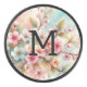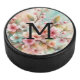 Floral watercolor monogram pink cherry blossoms hockey puck