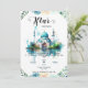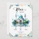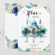 A watercolor floral Iftar dinner invitation with watercolor mosque and flowers and script calligraphy. The card is easy to customize with your wording, font, font color, paper shape options, and choice of paper types. The subtle ramadan scene and watercolor floral look stunning on the front, while the aqua blue watercolor flowers contrasting the backside make this iftar dinner invitation truly unique.