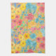 Floral watercolor pattern in yellow tea towel