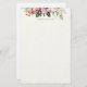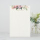 A colorful floral garland of watercolor coral and mauve peonies is an elegant heading to personalize, over a parchment print paper with taupe trim.