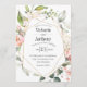 Beautiful soft pink, blush flowers with greenery creating a frame shape to outline this gorgeous invitation. Soft watercolors. So pretty for any season. Gold frame sets the tone for elegance.