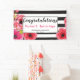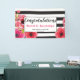 Floral Watercolor Roses & Stripes Grad Party Banner