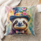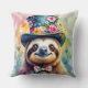 A damper sloth in a top hat done in floral watercolors.