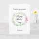 A green watercolor laurel and pink flowers pretty Mother's Day card for grandma, which you will be able to easily personalise the front with her name. The inside message of this pretty Mothers Day grandma card reads a heartfelt message, which you can also personalise if you wanted. The back has the same green watercolor laurel with pink flowers with a place for you to put the names of the grandchildren. A sweet Mother's Day keepsake for her.