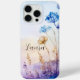 Floral Water-colour iPhone 15 Pro Max Case, aesthetic floral landscape watercolour, botanical dried florals with cool blues and beige tones. Edit your name or remove it