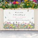 Welcome your wedding guests in style with this summery and modern floral welcome banner. It features an elegant and bright botanical design of colourful watercolor wildflowers with butterflies, bumble bees and ladybugs.