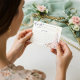 Add a heartfelt and interactive touch to your bridal shower with our beautifully designed recipe card. This card invites guests to share their favourite recipes, creating a meaningful keepsake the bride-to-be will treasure. The design features our hand-painted chic, elegant, and modern sheer white and pale blush pink wedding dress gown with a botanical garden of blooming roses and florals. The floral dress is hanging on an ornate vintage-style faux gold dress hanger. Soft flower lace details and sparkling emblements on the wedding dress create a beautiful, sophisticated, and luxurious look. Include this charming recipe card with your bridal shower invitations to engage guests in a fun and personal way. It’s a lovely addition to your celebration that blends beauty, sentiment, and creativity. Artwork and design by © Moodthology Papery.