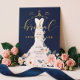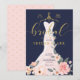 Floral Wedding Dress Navy Bridal Shower Invitation