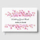 This wedding guest book is shown in a lovely pink floral print; text is shown in a black colour.