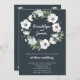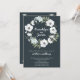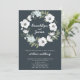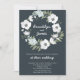 Floral wedding invitations with white wreath and customisable text, when the bride and groom are hosting, printed on dark background