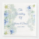 This wedding paper napkin is shown in a lovely watercolor floral print in colours of blue and white, text is shown in a dusty blue colour.