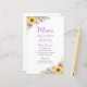 Floral Wedding Wildflower Sunflower Daisy Menu