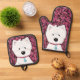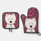 Floral Westie Art Oven Mitt & Pot Holder Set